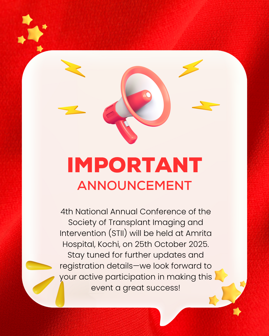 The Society of Transplant Imaging and Intervention (STII) have made remarkable progress since its inception, achieving several milestones that reflect its growing influence and commitment to academic and clinical excellence. Over the past three years, the Society has successfully organized three National Annual Conferences — the first at Kovai Medical Center and Hospital, Coimbatore, the second at Rela Hospital, Chennai, and the third .